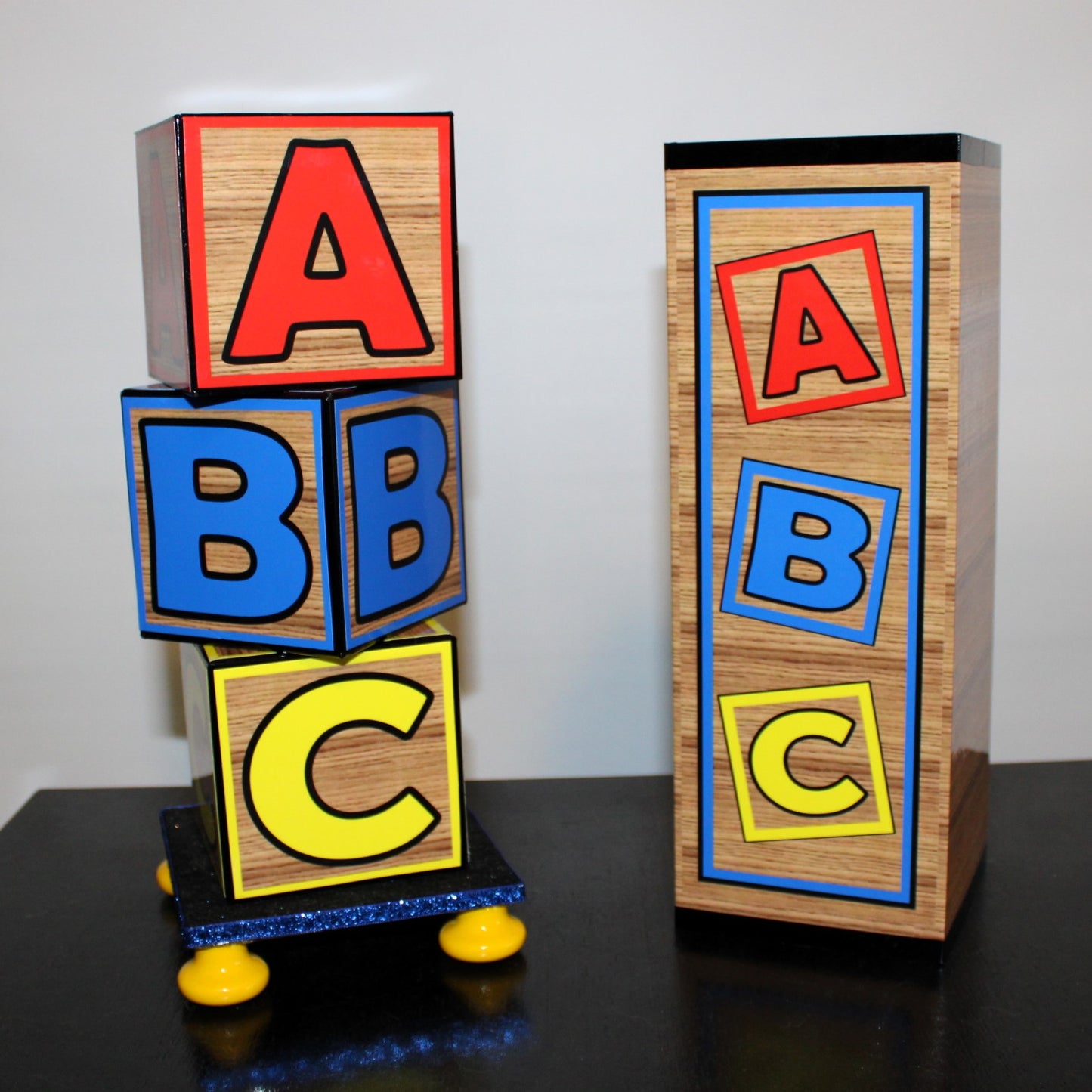 1) Large 3.5" ABC blocks. These blocks are a new style without holes and there is no pole to thread the blocks onto. These are larger than Tommy's original set.